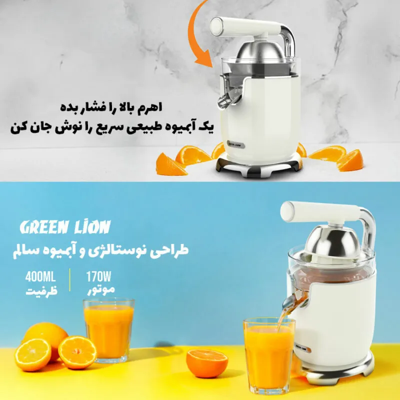 - موتور مسی قدرتمند 170 وات با سرعت 125 دور در دقیقه،استخراج سریع و کامل آب میوه