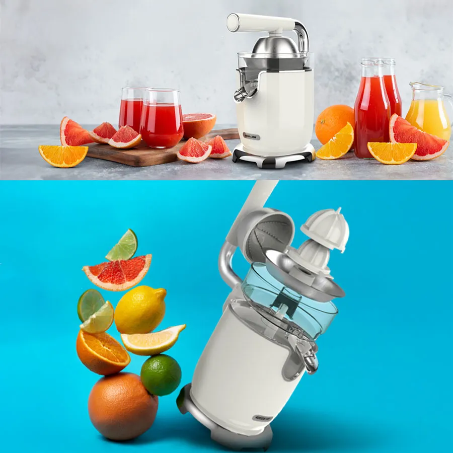 - دو مخروط با سایز متفاوت + فیلتر استیل ضدخش،مناسب پرتقال، گریپفروت و لیمو، برای عصارهگیری دقیقتر و پالپکمتر