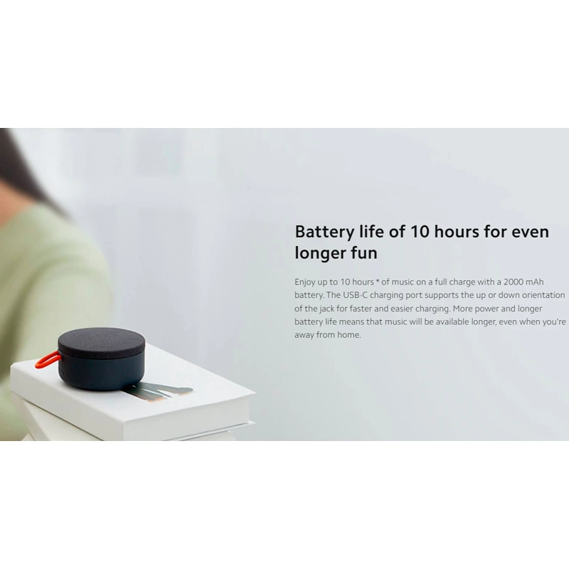 هدر دادن زمان خود را با سیمهای پیچ در پیچ و یا پیدا کردن درگاه usb یا به دنبال کابل گشتن را فراموش کنید و با اسپیکر بلوتوثی قابل حمل شیائومی mi portable bluetooth speaker به دنیای بیسیم وارد شوید و گوش دادن بدون دردسر به موسیقی را برای خودتان فراهم کنید.این گجت دارای طراحی بسیار زیبا در کنار وزن بسیار کم، بلوتوث نسخه ۵.۰، درجه ضد آبی IP55 میباشد و البته قیمتی بسیار مناسب است. این محصول دارای وزن بسیار کمی است. به همین دلیل به راحتی قابل حمل بوده و می توان آن را جا به جا کرد. به دلیل قابل جمل بودن این محصول این امکان وجود دارد که آن را هر جایی خواستید ببرید و حتی برای ورزش و کوهنوردی هم از آن استفاده کرد. وزن آن در حدود 182 گرم می باشد. به سادگی شما می توانید آن را درون کیف یا جیب خود قرار دهید. علاوه بر آن این محصول مجهز به گیره است که با استفاده از آن می توانید اسپیکر بلوتوثی قابل حمل شیائومی mi portable bluetooth speakerرا به سوراخ یا زیب آویزان کرده و در هر حال از آن استفاده کنید.