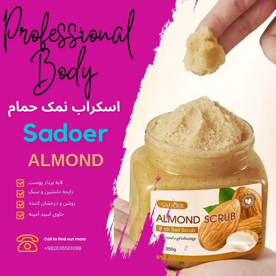اسکراب لایه بردار پوست سادور مدل بادام وزن 350 گرم اسکراب بدن نمک حمام سادور مدل بادام با قابلیت آبرسانی پوست و رفع سیاهی بدن بدون ایجاد التهاب و رفع پوست مرغی در کنار قابلیت روشن کنندگی پوست و کند کردن روند پیری پوست بهترین محصول اسکرابی برای ایجاد پوستی با طراوت و شفاف میباشد همچنین . این محصول بسیار موثر در از بین بردن سیاهی کشاله ران، سر آرنج،زانو و قوزک پا میباشد.