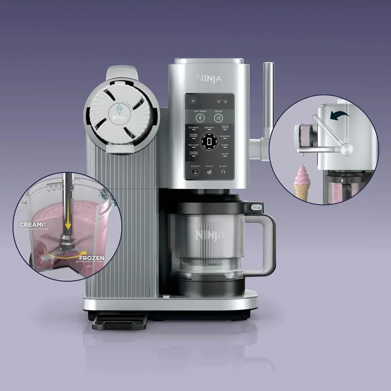 با Ninja CREAMi NC۷۰۱ در کمترین زمان بستنی نرم و خوشمزه خانگی درست کنید. • طعمهای دلخواه خود را با این دستگاه سفارشیسازی کرده و دسرهای سالمتری تهیه کنید. • طراحی جمعوجور آن فضای کمی اشغال میکند و برای هر آشپزخانهای ایدهآل است. • با قابلیتهای متنوع، از بستنی تا میلکشیکهای کرمی را بهراحتی آماده کنید. • استفاده آسان و شستشوی سریع این دستگاه، تجربهای بیدردسر برای شما رقم میزند. • ترکیب عملکرد قدرتمند با صدای کم، لذت درستکردن دسرهای خانگی را دوچندان میکند.