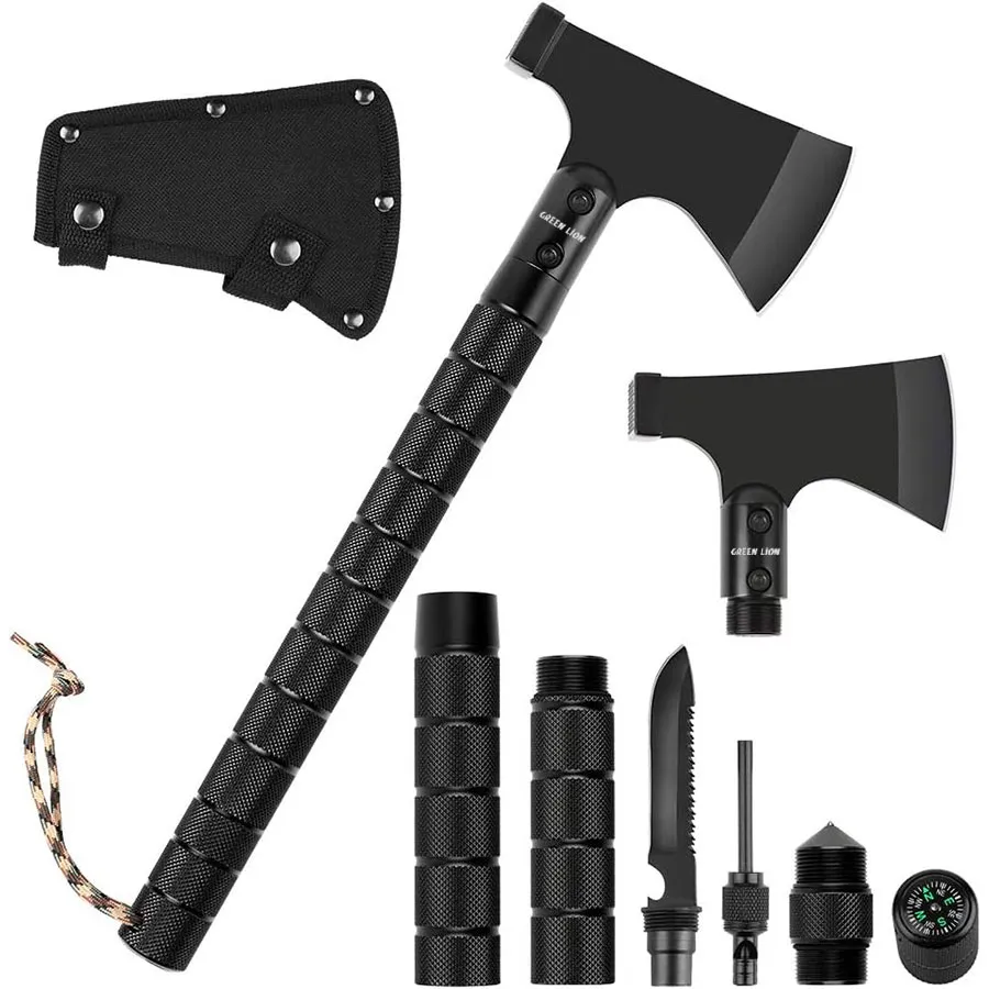 تبر چندکاره Green Lion Multi-Tool Axe یک مجموعه حرفه‌ای و مستحکم برای تمام علاقه‌مندان به کمپینگ و طبیعت‌گردی است. این محصول با طراحی ارگونومیک و کیفیت ساخت بالا، از ترکیب آلومینیوم سبک و استیل ضدزنگ 420 ساخته شده و در شرایط سخت محیطی نیز دوام فوق‌العاده‌ای دارد.