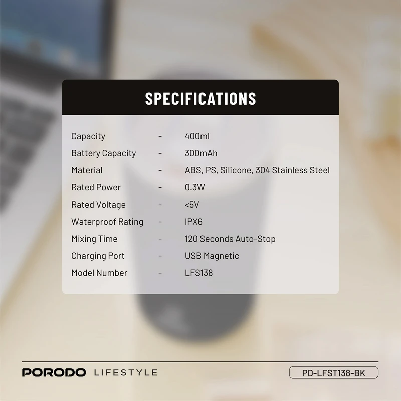 ماگ همزندار PORODO مدل PD-LFST138 یک انتخاب هوشمندانه و مدرن برای افرادی است که به دنبال راحتی و سرعت در تهیه نوشیدنیهای خود هستند. این ماگ 400 میلیلیتری با داشتن باتری 300 میلیآمپرساعتی، قابلیت همزدن خودکار نوشیدنی را تنها در 120 ثانیه دارد و پس از اتمام فرآیند بهطور خودکار خاموش میشود.