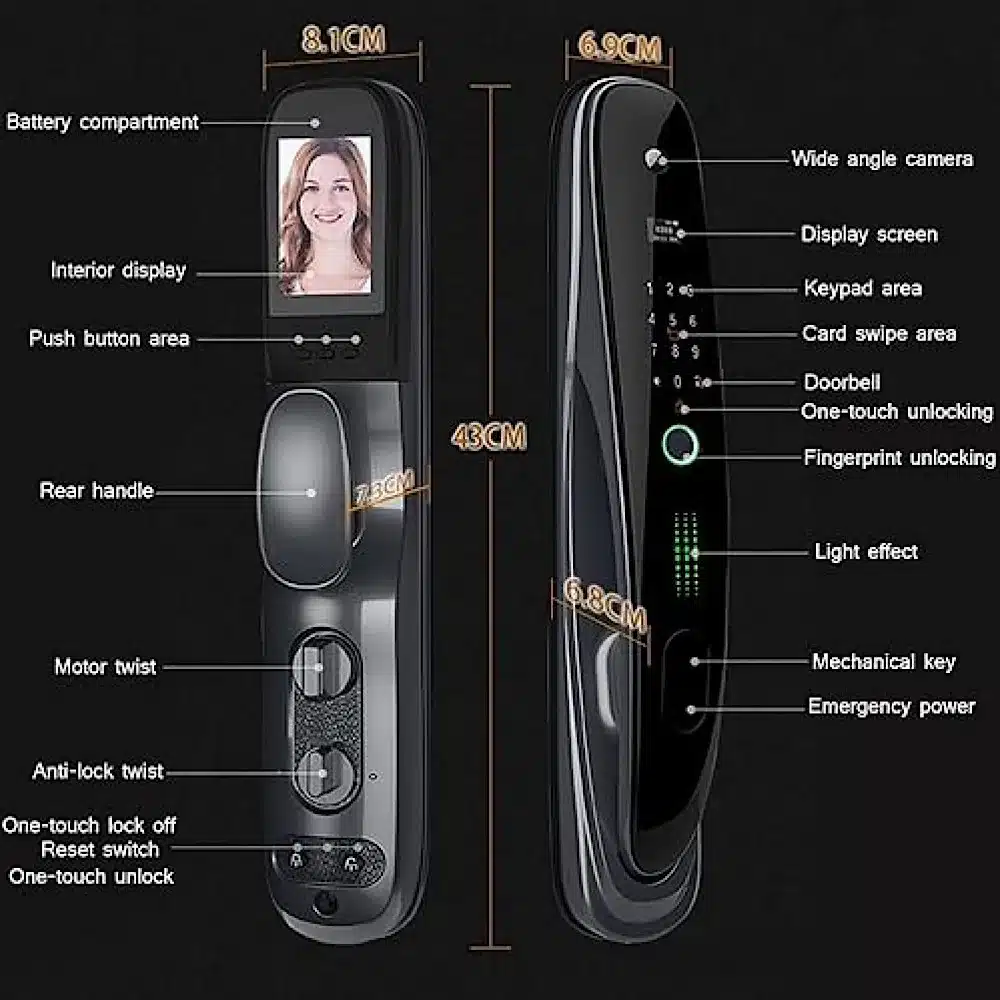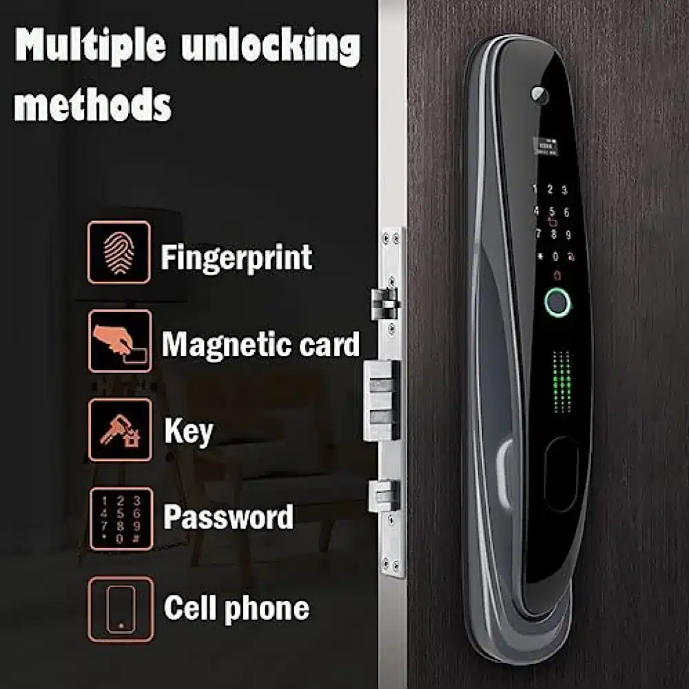 • کنترل هوشمند از راه دور: با اپلیکیشن رایگان TUYA می توانید قفل در را از مدیریت رمز گرفته تا مشاهده تصویری چشمی و گزارش ترددهای روزانه از هر کجا که دلتان می خواهد کنترل کنید.