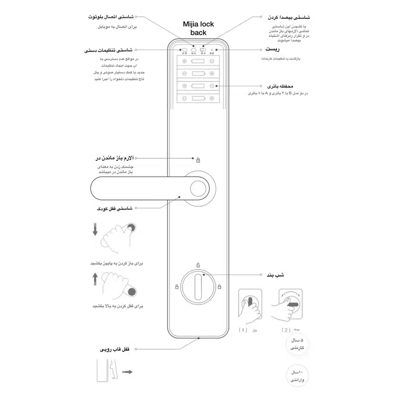 تنوع روش های قفل گشایی در دستگیره های هوشمند که بعضا قفلگشایی با کلید را هم پشتیبانی میکنند، میتواند پاسخگوی نیازهای طیف گسترده از کاربران باشند. دستگیره هوشمند شیائومی میجیا MJZNMS03LM یکی از دستگیره های هوشمند شیائومی است که از 6 مود قفل گشایی بهره مند است.
