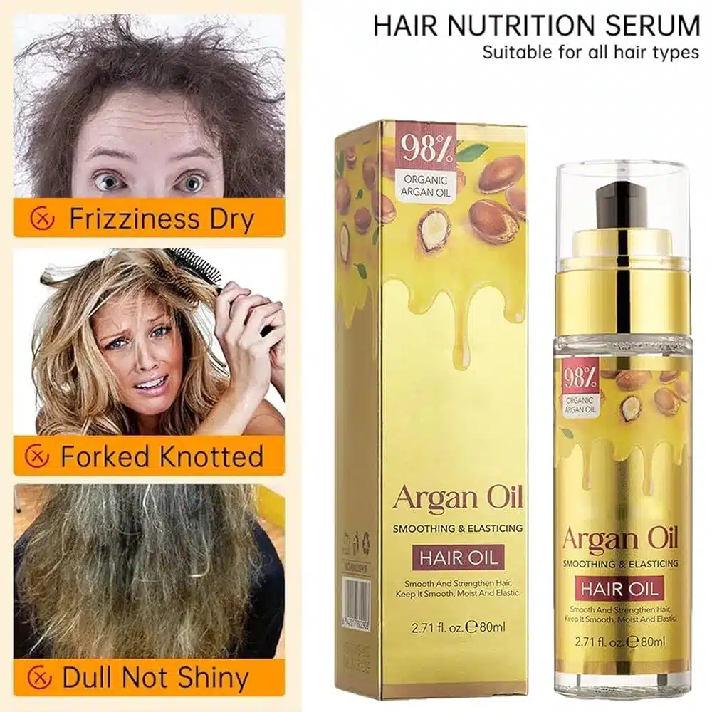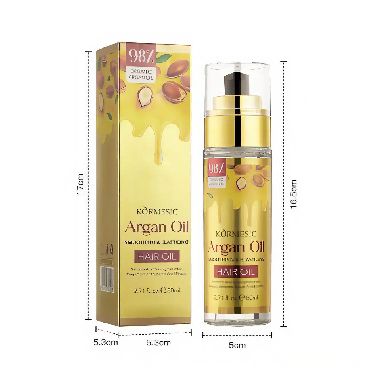 اگر به دنبال راهحلی معجزهآسا برای موهای خشک، آسیبدیده و ترمیم پوست و ناخن خود هستید، روغن آرگان 98% کورمسیک همان چیزیست که نیاز دارید. این روغن با کیفیت بالا و اصل، موها را به شکلی عمیق تغذیه کرده و درخشندگی طبیعی آن را بازمیگرداند و باعث ترمیم بافتهای آسیب دیده پوست و رشد و تقویت ناخنها میشود.روغن آرگان از هسته میوه درخت آرگان به دست میآید و نام دیگر این درخت، درخت زندگی است. روغن آرگان سالهاست در صنعت آرایشی و بهداشتی برای حفاظت از پوست و مو در برابر شرایط سخت محیطی استفاده میشود.این روغن دارای خاصیت مرطوب کنندگی پوست و استحکام بخشی به بافت کراتین ناخن و مو ، افزایش ضخامت مو، حفاظت و کنترل مو در برابر اثرات جانبی ناشی از تابش نور خورشید و آلودگی است.روغن آرگان سبب رطوبت رسانی و جلوگیری از تبخیر رطوبت پوست و مو و همچنین درخشندگی، افزایش ضخامت، الاستیسیته و نرمی مو میگردد.این روغن باعث حفاظت کوتیکول مو در برابر آسیبهای ناشی از حرارت دستگاههای حالت دهنده مو می شود. مولکولهای موجود در این روغن دارای اندازه کوچکی هستند که به راحتی در کورتکس مو و لایه های زیرین پوست نفوذ کرده و مواد مغذی و ویتامینها را به پوست و مو میرسانند.روغن آرگان با افزایش تولید کراتین در پوست سر باعث افزایش حفظ و دوام فولیکولها و رشد مو میگردد. روغن آرگان غنی از ویتامین E، کاروتن، فنولها، فنولیک اسید، اسکوآلن و بسیاری از اسیدهای چرب ضروری از جمله آلفا لینولنیک اسید، پالمیتیک اسید، استایریدونیک اسید، مریستیک اسید و لینولئیک اسید است.همچنین این روغن به علت داشتن استرولهای خاص گیاهی، دارای اثر آنتی اکسیدانی و ضد التهابی است.