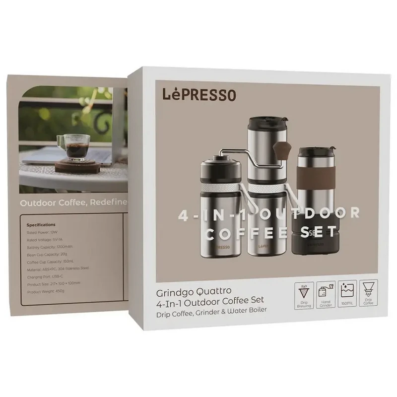 این ست با کیفیت یک مجموعهٔ کامل و جمعوجور برای عاشقان قهوه است که از «آسیاب تا فنجان» را داخل یک پک سبک و مقاوم جمع کرده است. این دستگاه مخصوص سفر، کمپینگ، محل کار و هر جایی است که میخواهید قهوهای تازه و حرفهای بنوشید بدون پیچیدگی و ابزار اضافه .در این پک آسیاب دستی دقیق، سیستم دمآوری قطرهای، محفظه نگهدارنده دانه و کتری برقی همراه شماست. بدنه لوازم از استیل ضدزنگ 304 و قطعات از ABS+PC با استاندارد غذایی ساخته شدهاند و باتری داخلی کتری قابل شارژ میباشد و تمامی لوازم فوق درکنار وزن کم و طراحی فشرده این محصول را مناسب کولهپشتی برای طبیعتگردی و کوهنوردی کرده است.