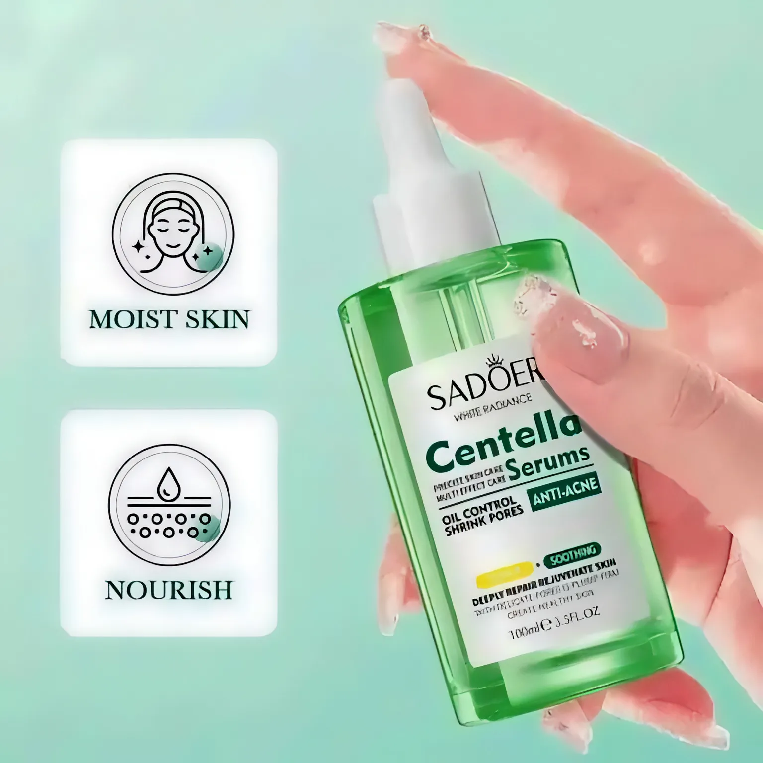سرم ضدجوش سادور مدل سنتلا حجم ۱۰۰ میلی لیتر سرم ضدجوش سنتلا Sadoer یک محصول شگفت انگیز در کنترل چربی پوست صورت بوده و در سریع‌ترین زمان هرنوع جوش و آکنه و قرمزی ناشی از آکنه را درمان کرده و پوست را پاکسازی می کند. این سرم با کارایی سریع خود جای جوش را برطرف کرده و پوست را احیا و تقویت میکند و پوست آسیب دیده را به پوستی نرم ، تازه و زیبا تبدیل میکند، همچنین چربی پوست را متعادل می کند و آنتی باکتریال است که از ایجاد دوباره جوش و آکنه پیشگیری می کند.این سرم با عصاره های گیاهی و مواد مغذی به طور معجزه آسایی تمام آسیب های پوستی را محو میکند و با روشن کردن رنگ پوست و بستن منافذ موجب پوستی صاف و درخشان می شود.سرم ضدجوش سنتلا Sadoer با ملایمت چربی اضافی موجود در دیواره منافذ پوست را پاکسازی کرده و سلول‌های مرده پوست و آلودگی هایی که در منافذ محبوس شده را محو می‌کند که در نتیجه باعث درمان و جلوگیری از ایجاد دوباره جوش می شود و با افزایش گردش سلولی پوست و اثر لایه برداری پوست را از نو بازسازی و شاداب می کند.همچنین باکتری های ایجاد کننده آکنه را از بین می‌برد و پوستی شاداب،بدون جوش خواهید داشت.بافت این سرم بسیار سبک و زودجذب است و بدون احساس سنگینی با اولین تماس پوست جذب می شود.