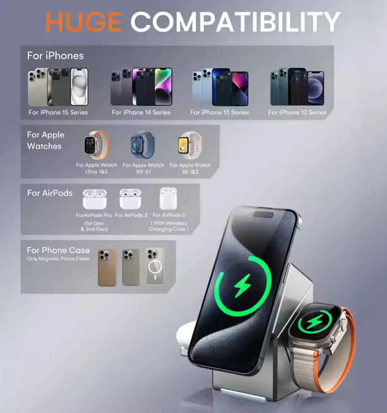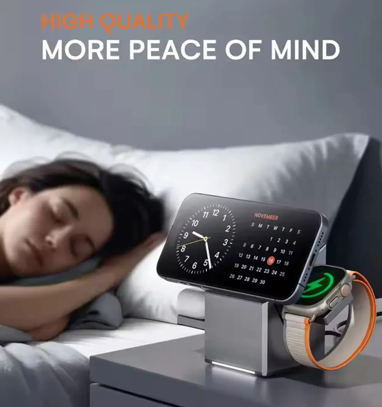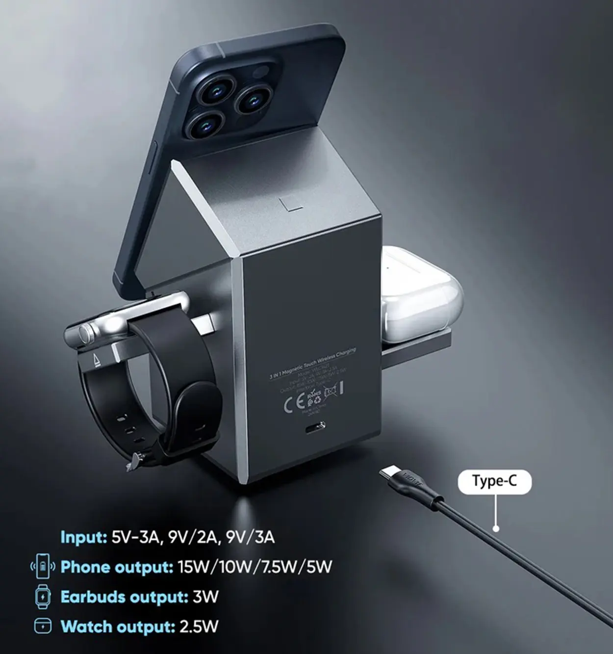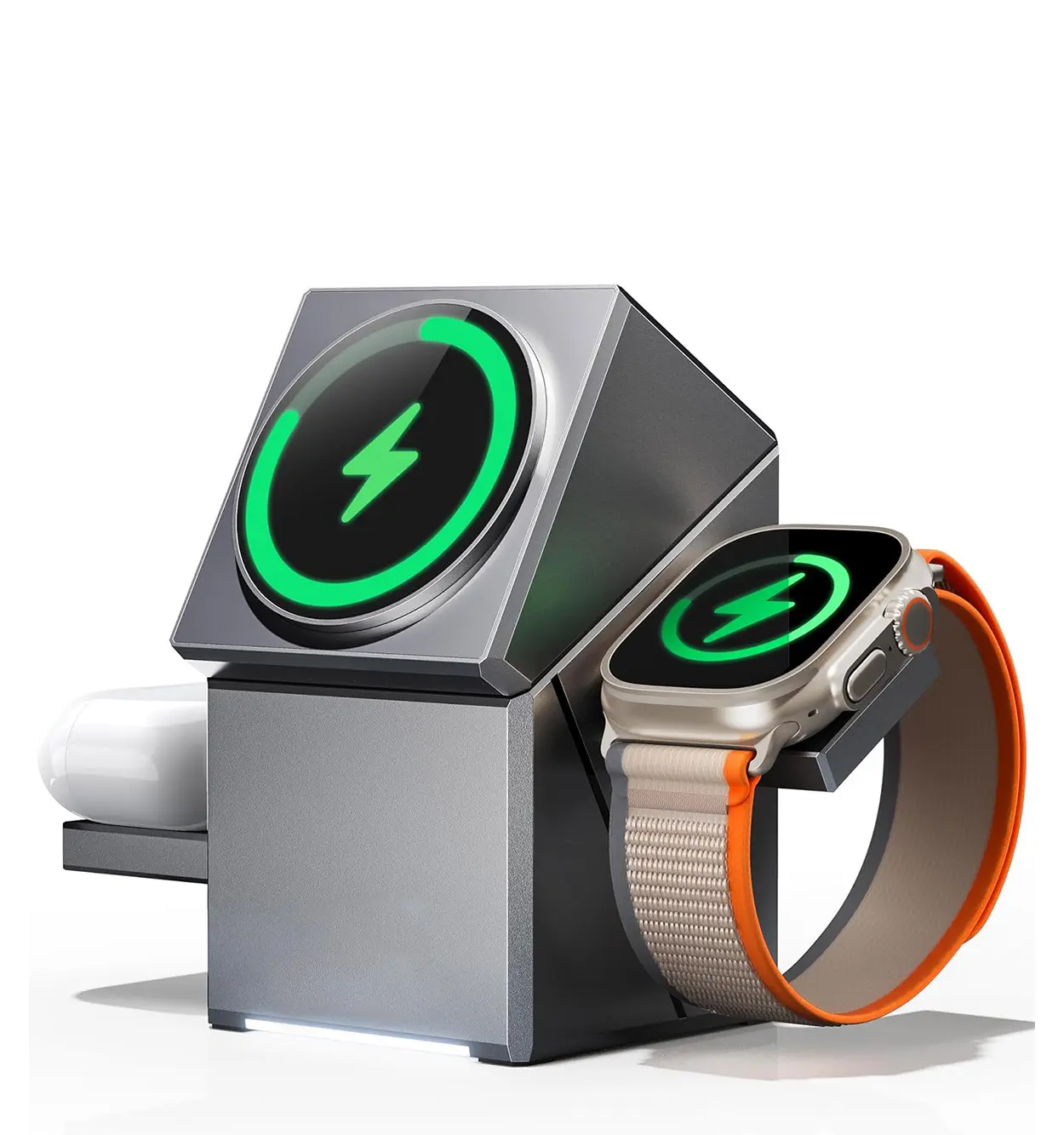 شارژر بیسیم ۳ کاره گرین لاین Power Trio 3 In 1 Wireless Charger یک راهحل نوآورانه برای شارژ است که به شما این امکان را میدهد تا بهطور کارآمد و راحت دستگاههای خود را شارژ کنید. این شارژر شیک و مدرن به شما این امکان را میدهد که سه دستگاه را بهصورت همزمان شارژ کنید، که آن را برای خانوادهها یا دفاتری که دارای چندین گجت هستند، ایدهآل میسازد.این شارژر دارای پدهای شارژ اختصاصی برای گوشی هوشمند، ساعت هوشمند و هدفونهای بیسیم است و عملکرد شارژ سریع و قابلاعتمادی را برای تمامی دستگاهها فراهم میکند. فناوری شارژ هوشمند آن بهطور خودکار قدرت خروجی بهینه برای هر دستگاه را تشخیص میدهد و اطمینان حاصل میکند که هر بار شارژ ایمن و کارآمد انجام شود.طراحی جمعوجور این شارژر فضای کمی را روی میز کار یا کنار تخت شما اشغال میکند و سطح ضدلغزش آن دستگاههای شما را در حین شارژ بهخوبی در جای خود نگه میدارد. چراغهای LED نشانگر وضعیت شارژ، دید واضحی از وضعیت شارژ ارائه میدهند تا همیشه بدانید دستگاههای شما چه زمانی آماده استفاده هستند.این شارژر با انواع مختلفی از دستگاهها از جمله آیفون، سامسونگ و سایر گوشیهای هوشمند سازگار با فناوری Qi، همچنین ساعت اپل و انواع هدفونهای بیسیم سازگار است. شارژر بیسیم ۳ در ۱ پاور تریو گرین لاین یک اکسسوری ایدهآل برای هر کسی است که به دنبال سادهسازی روند شارژ خود و کاهش شلوغی کابلها است.