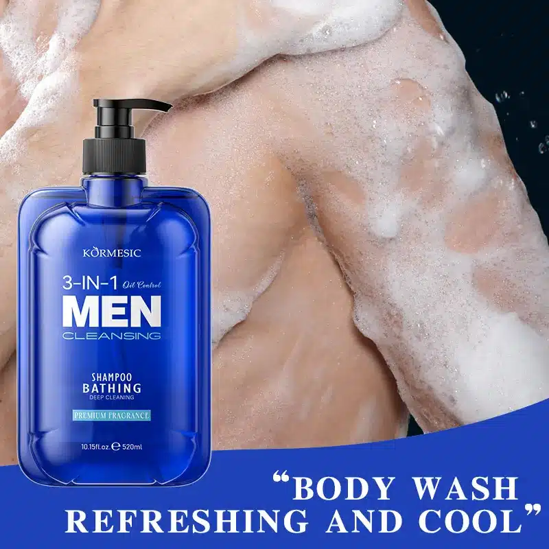 شامپو سه در یک مردانه کورمسیک محصولی برای شستشوس مو ،بدن و صورت میباشد.این شامپو با فرمولاسیون خنک قابلیت صد شوره برای موی سر آقایان را دارد و همچنین با داشتن عصاره آلوورا قابلیت نرم کنندگی و آبرسانی برای پوست و مو را دارد.