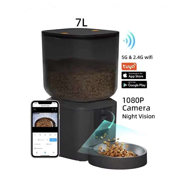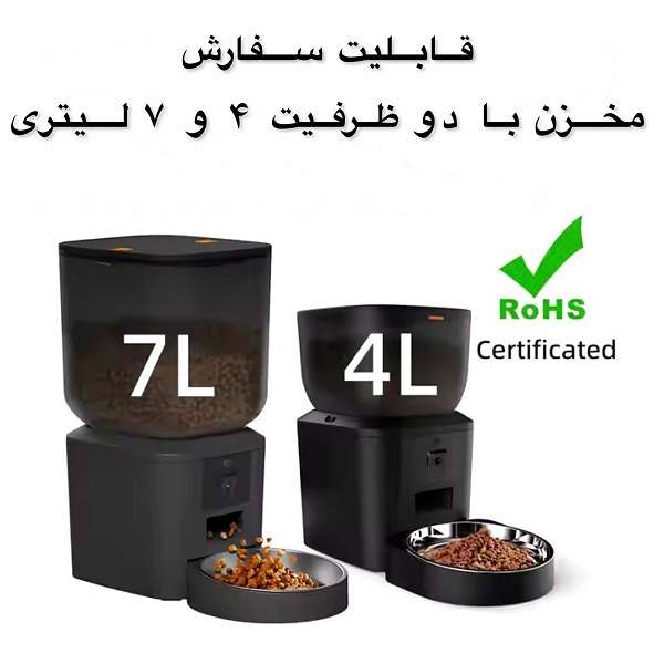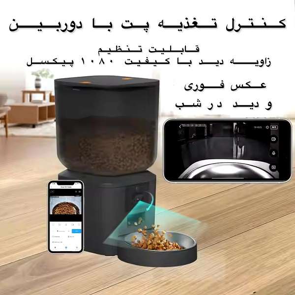 • کنترل از راه دور با اپلیکیشن TUYA: با نصب و استفاده از اپلیکیشن اختصاصی، می‌توانید حجم و زمان‌بندی غذا خوردن پت خود را به صورت آنلاین و دقیق کنترل کنید.