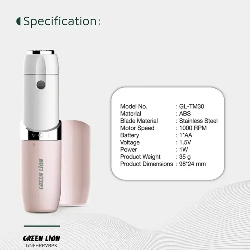 ماشین اصلاح صورت گرین لاین مدل GL-TM30 یک ابزار جمعوجور و کاربردی برای اصلاح موهای صورت است. مخصوص بانوان طراحی شده و با تیغه استیل ضد زنگ و طراحی ارگونومیک اصلاحی دقیق و لطیف ارائه میدهد. سبک و کمحجم بودن حمل راحت را ممکن میسازد و برای سفر یا استفاده روزانه ایدهآل است. با یک باتری قلمی تامین انرژی میشود و بدون وجود کابل میتوان از آن استفادهای آسان داشت.
