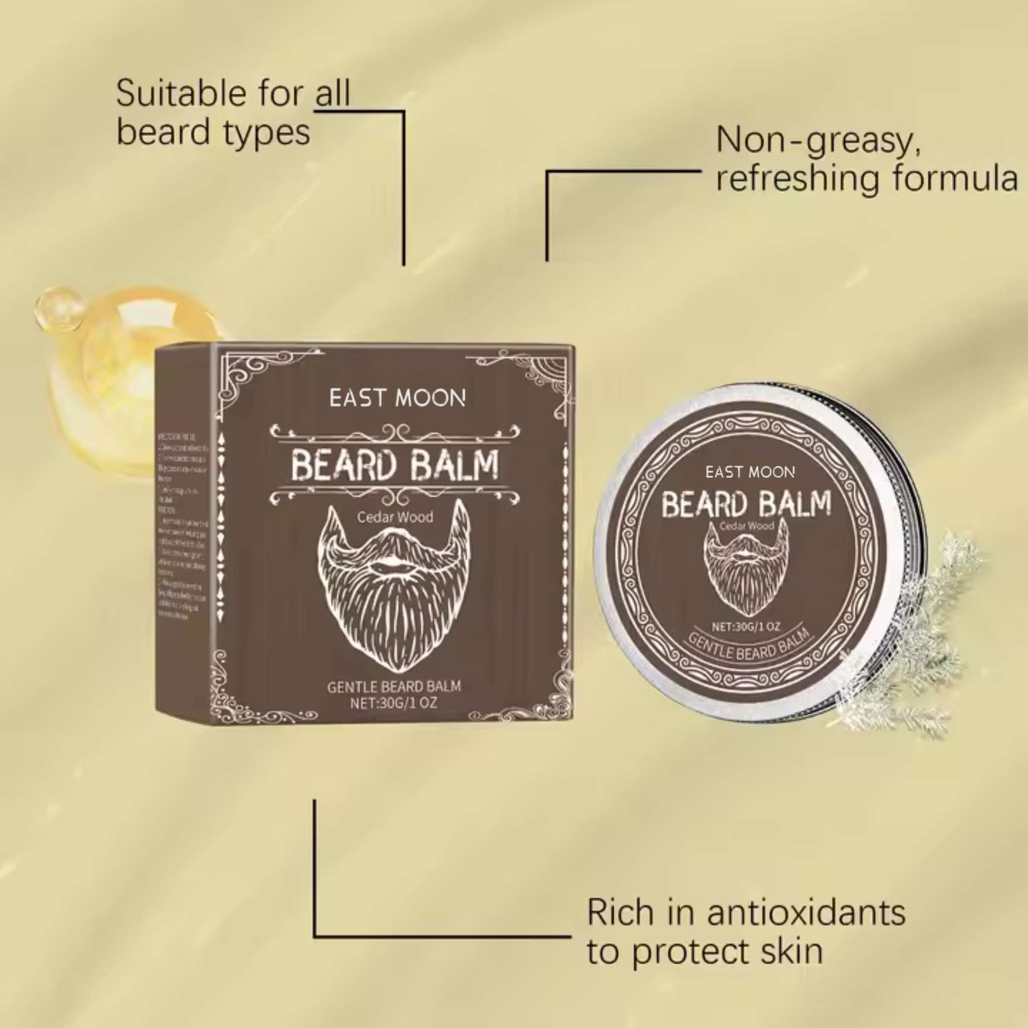 واکس ریش و سبیل بیرد بالم مدل Cedar Wood حجم 30 گرم واکس ریش و سبیل بیردبالم مدل چوب سدار حاوی روغن نارگیل برای نرم کردن ریش، روغن چای سبز بعنوان آنتی اکسیدان، روغن بادام شیرین برای تقویت و رشد ریش،روغن برگ سوزنی جونپیروس ویرجنیا برای حجم دهی و پرپشت کردن ریش و سبیل،موم طبیعی عسل برای حالت دهندگی هر چه بیشتر و در نهایت روغن چوب سدار بعنوان خوشبو کننده است.این واکس ریش و سبیل سرشار از آنتی اکسدان و دارای فرمولی غیر چرب میباشد که علاوه بر تقویت موی ریش و سبیل و حالت دهنگی کامل حس طراوت و تازگی را به شما میدهد.