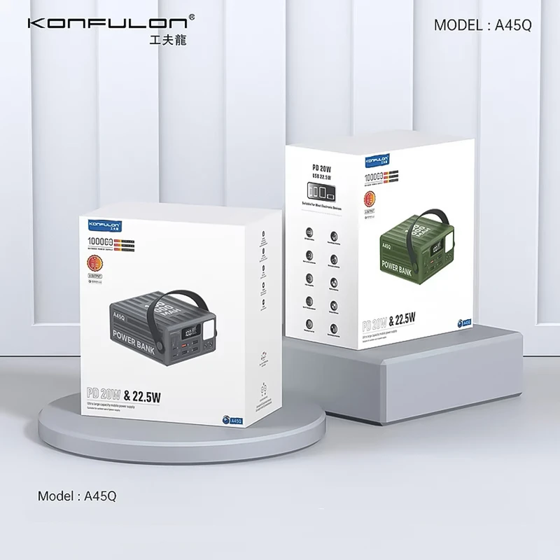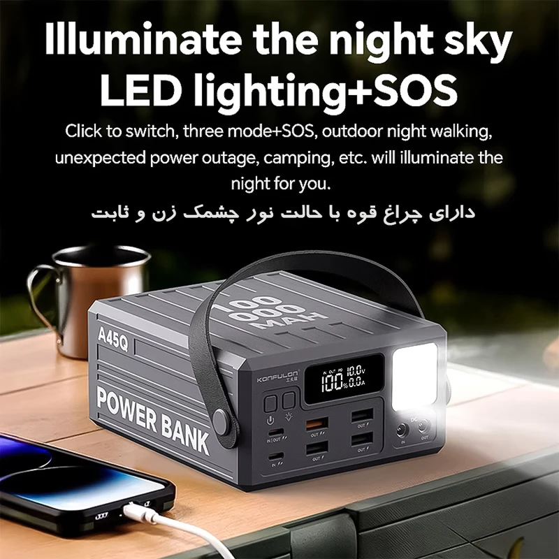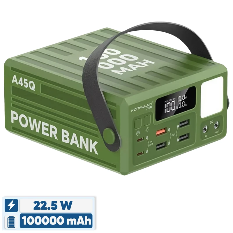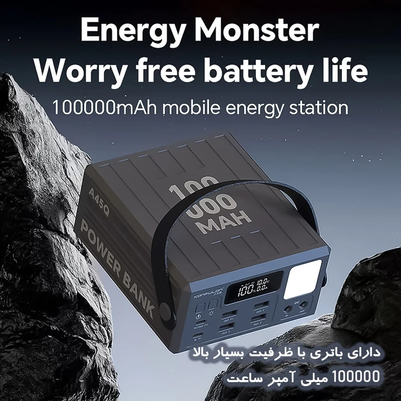پاوربانک هوشمند برند کانفلون مدل A45Q با ظرفیت 100 هزار میلی آمپر یک انتخاب عالی برای استفاده در سفر، کمپینگ، گردشگری، و حتی استفاده روزمره است. این پاوربانک دارای یک دسته برای حمل آسان است. این پاوربانک با قابلیت شارژ سریع و قدرتمند، میتواند گوشیهای هوشمند، تبلت، دوربینهای دیجیتال و دیگر دستگاههای الکترونیکی را به سرعت شارژ کند. صفحه نمایش میزان شارژ آن به کاربر امکان مشاهده دقیق میزان باقیمانده باتری را میدهد. همچنین، این پاوربانک هیولا دارای ایمنی بالا است و دارای قطع کن خودکار برای جلوگیری از برقراری اتصالات ناخواسته است. محافظ جریان برق آن نیز از خطرات مربوط به جریان بالا محافظت میکند. با داشتن چراغ قوه پر نور، این پاوربانک میتواند در شرایط تاریکی به عنوان یک چراغ قوه مفید عمل کند. به طور کلی، پاوربانک کانفلون مدل A45Q یک انتخاب عالی برای هر کسی است که به دنبال یک پاوربانک با عملکرد بالا و ایمنی برای استفاده کمپ و سفر و مسافرت است. بدنه چندلایه ضد انفجار، ورودی و خروجی DC، سیستم محافظت از جریان و ایمنی فوق العاده بالا و ظرقیت 100000 میلی آمپر ساعتی با توان 22.5 وات و سیستم پاوردلیوری (PD) از ویژگی های مهم این محصول جالب از برند معتبر کانفلون میباشد. پیشنهاد میشود برای کسب اطلاعات بیشتر تمام عکسها را مشاهده فرمایید تا به قابلیتهای شگفتانگیز این هیولا بیشتر پی ببرید.