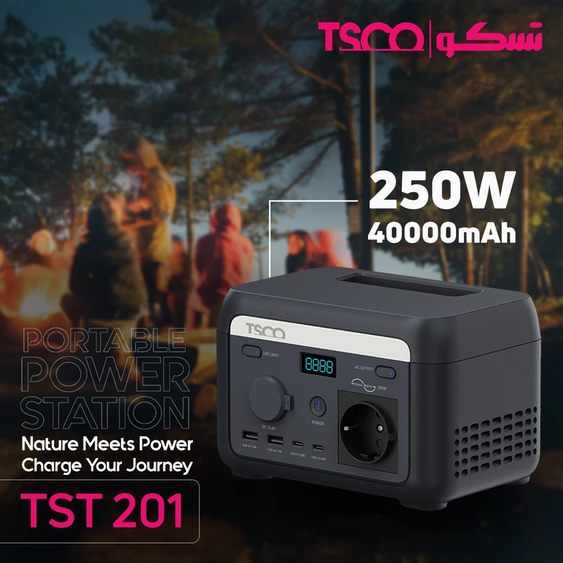 پاوراستیشن تسکو مدل TST 201 یک نیروگاه برق جمع‌وجور هوشمند با ترکیب طراحی زیبا، سرعت شارژ بالا و قابلیت‌های چندمنظوره است که با هدف در اختیار داشتن همیشگی انرژي در شرایط اضطراری و قطعی برق مانند بلایای طبیعی و انسانی و یا در هر شرایطی که پریز برق شهری در دسترس نیست مانند کمپ و سفر طراحی شده است. در قلب این پاوراستیشن، باتری قدرتمند LiFePO4 با ظرفیت 102.4وات ساعت با دوام فوق‌العاده و عمر مفید تا ۱۰ سال قرار دارد. خروجی AC با موج سینوسی خالص و توان ۲۰۰ وات برق پایدار برای لپ‌تاپ، تلویزیون یا لوازم خانگی سبک فراهم می‌کند. وجود چندین درگاه USB-A و USB-C با توان‌های مختلف، امکان شارژ هم‌زمان چند دستگاه را فراهم کرده است. یکی از ویژگی‌های منحصربه‌فرد تسکو TST 201، پشتیبانی از شارژ فوق‌سریع (Super Fast Charge) است که با استفاده از آن، این نیروگاه برق جمع و جور تنها در ۱.۲۵ ساعت به‌طور کامل شارژ می‌شود. علاوه بر این، با استفاده از قابلیت UPS (منبع تغذیه بدون وقفه) این دستگاه در هنگام قطع برق، در کمتر از ۱۰ میلی‌ثانیه وارد حالت پشتیبان خواهد شد و از خاموش شدن سیستم‌های کامپیوتری و از دست دادن داده‌ها در چنین شرایطی جلوگیری می‌کند. سیستم خنک‌کننده هوشمند داخلی نیز با کنترل دما، عملکردی پایدار و ایمن را در استفاده طولانی‌مدت تضمین می‌کند. طراحی بدنه‌ی مقاوم از جنس ABS+PC، وزن سبک حدود ۲ کیلوگرم و رنگ خاص Midnight Blue باعث شده این پاوراستیشن هم زیبا و هم قابل حمل باشد. نمایشگر دیجیتال و نشانگرهای LED وضعیت شارژ، ورودی‌ها و خروجی‌ها را به‌وضوح نمایش می‌دهند تا امکان مطلع شدن از شرایط دستگاه‌های متصل و میزان انرژي ذخیره باقی‌مانده در هر زمان به راحتی وجود داشته باشد. در مجموع پاوراستیشن تسکو مدل TST 201 با قابلیت های کاربردی متعدد مانند شارژ سریع، عملکرد بی‌وقفه، قابلیت UPS و عمر طولانی یکی از بهترین گزینه‌های موجود برای افرادی است که به دنبال یک منبع برق قابل اطمینان در شرایط اضطراری و یا در زمان سفر و طبیعت‌گردی هستند.