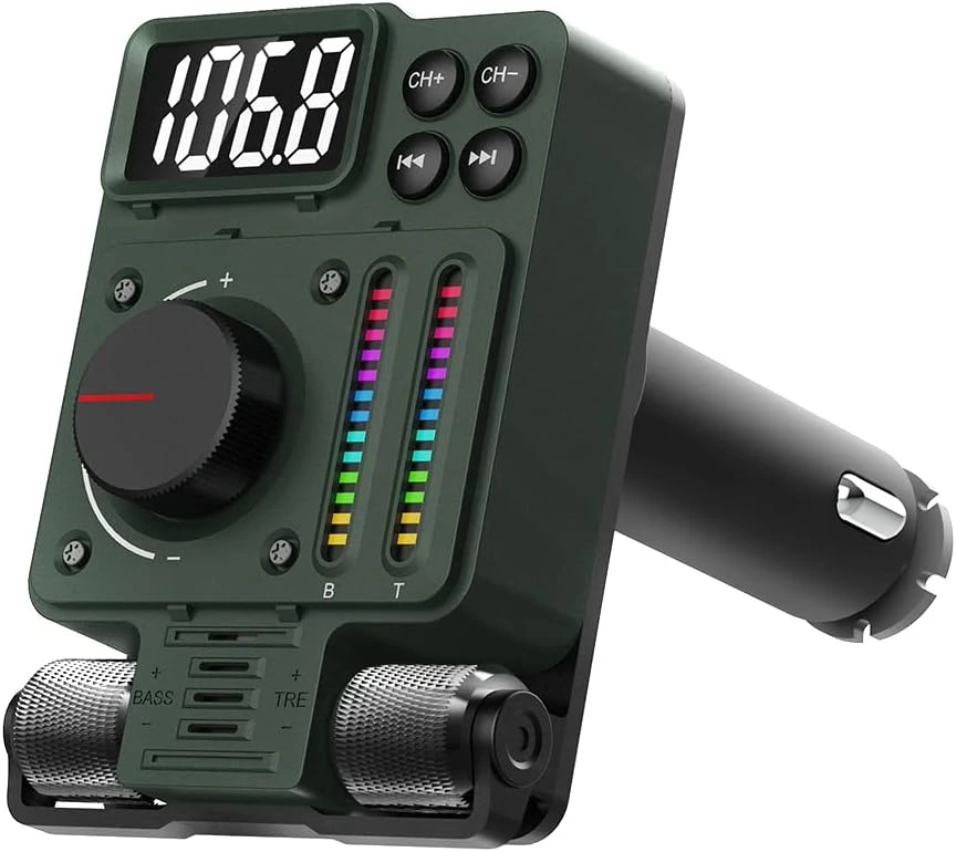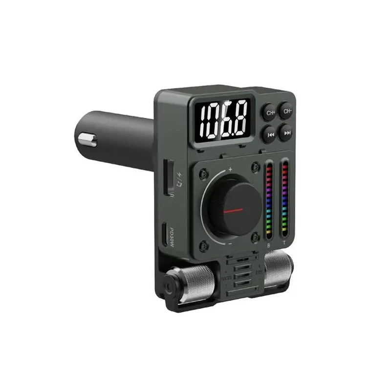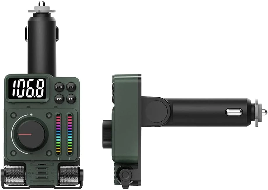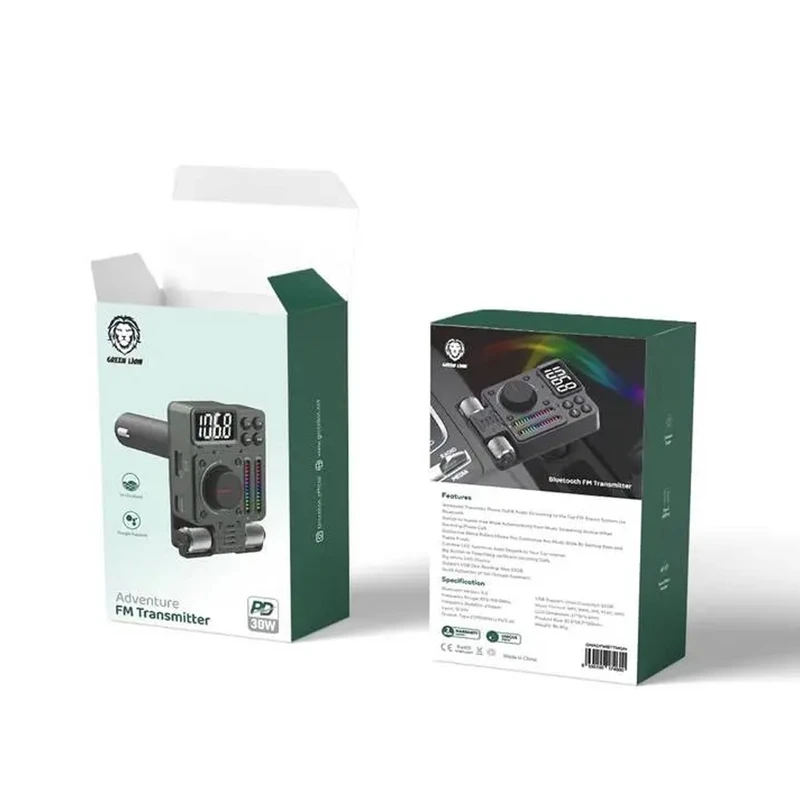 کیت فرستنده FM گرین مدل Adventure با ظاهری منحصر به فرد و جذاب و چند قابلیت بسیار کاربردی مخصوص درگاه فندکی خودرو طراحی شده که از طریق آن میتوانید موبایل خود را نیز شارژ کنید و همچنین ضبط خودرو های قدیمی را تبدیل به ضبط بلوتوثی کنید .اگر روزانه مدت زمان طولانی را در بیرون از خانه میگذرانید و همچنین اگر دائما در حال سفر و گشت و گذار هستید ، قطعا باید به فکر راه حلی برای کم شدن شارژ باتری موبایل خود باشید . بنابراین شارژر های فندکی بهترین گزینه هستند و از طریق درگاه فندکی ماشین نیز میتوانند موبایل شما را شارژ کنند .دارای پورت USB-A و USB-C است و از قابلیت شارژ سریع نیز پشتیبانی میکند .ولومهای چرخشی که بر روی دستگاه قرار دارد ، برای افزایش بیس موزیک و … میباشد .دو پنل نواری شکل با نور های LED با ریتم موزیک هماهنگ میشود و لذت گوش دادن به موسیقی را به خصوص در هنگام شب دو چندان میکند .پورت USB-A قابلیت پشتیبانی از فلش مموری را تا ظرفیت حداکثر 32 گیگابایت را دارد و فرمتهای MP3، WMA ، WAV و … را نیز پشتیبانی میکند .با اتصال موبایل به فرستنده از طریق بلوتوث ، میتوانید تماسهای صوتی خود را از طریق آن نیز پاسخ دهید . همچنین از دستیار صوتی گوگل و سیری پشتیبانی میکند .