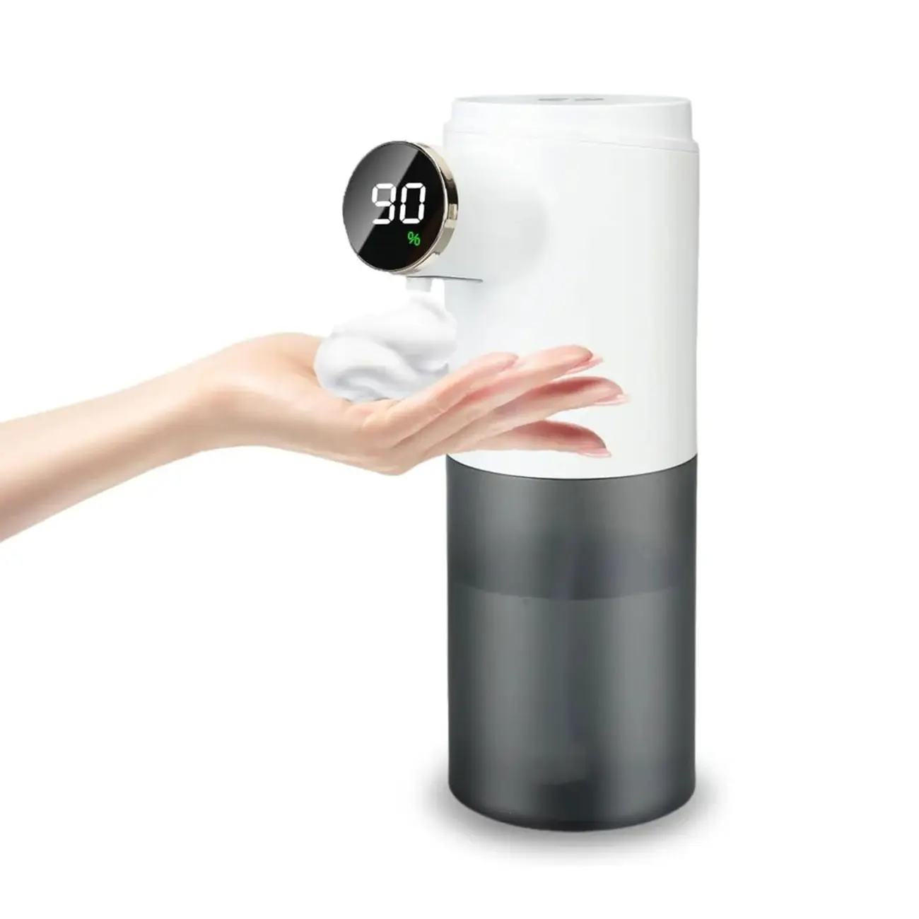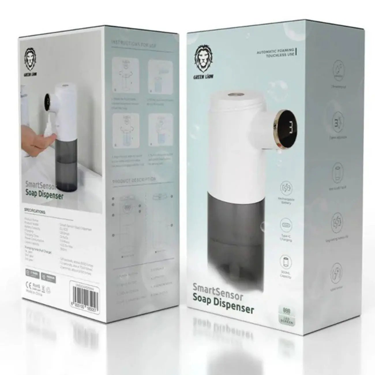 دستگاه مایع صابون هوشمند گرین- این دستگاه جذاب دارای یک سنسور هوشمند است که می توانید بدون لمس کردن از آن استفاده کنید. تنها کافی است که مخلوط مایع صابون و آب را داخل مخزن این دستگاه بریزید و دستگاه را روشن کنید. با گرفتن دستتان در زیر سنسور این دستگاه، مایع صابون به صورت فوم روی دست شما می ریزد. ظرفیت مخزن این محصول 300 میلی لیتر می باشد. این دستگاه دارای یک باتری قابل شارژ 1200 میلی آمپر ساعتی بوده که از طریق درگاه تایپ سی شارژ می شود. مدت زمان شارژ این محصول 1 ساعت و نیم می باشد.