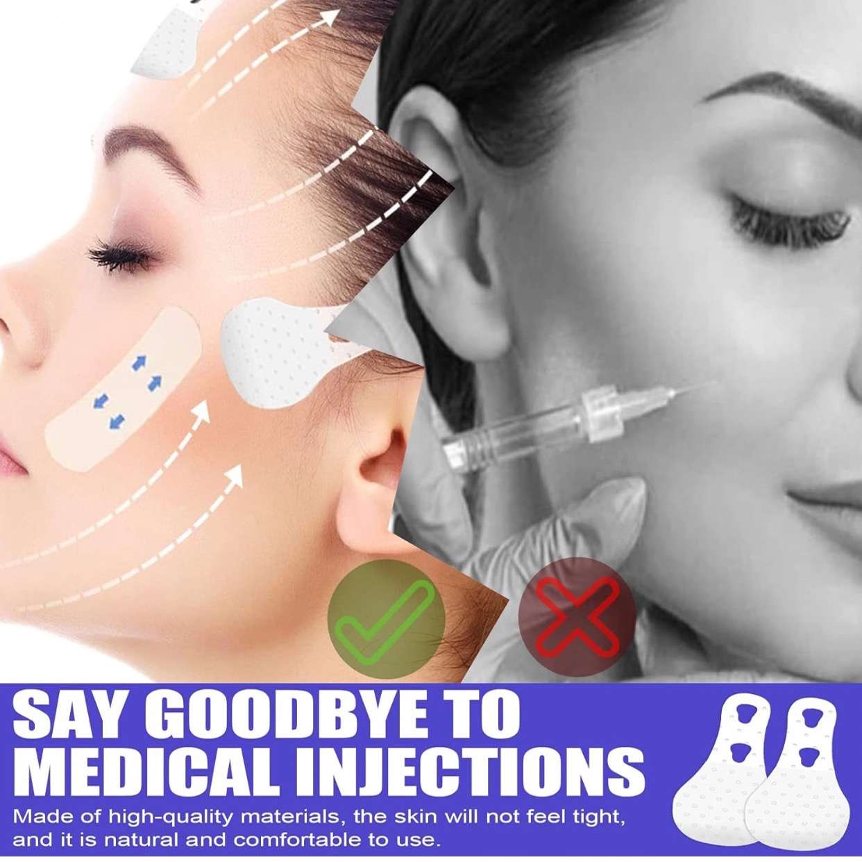 چسب لیفت صورت ایلهو مدل V-SHAPETHIKEN یک راهحل زیبایی غیرتهاجمی، سریع و آسان برای فرمدهی و لیفت موقت پوست صورت است. این چسبها بهصورت نوارهای بسیار نازک و نامرئی طراحی شدهاند که میتوانند پوست افتاده یا شل شده ناحیه فک و گونه را بهسمت بالا بکشانند و باعث ظاهر V-شکلتر و جوانتر صورت شوند.این نوارها بسیار ظریف و تقریباً نامرئی هستند، بهطوریکه بعد از چسباندن زیر آرایش یا کرمپودر نیز قابل تشخیص نیستند. طراحی آنها بهگونهای است که برای استفاده روزمره، مجالس، عروسی، عکسبرداری و تماس تصویری مناسب باشد.