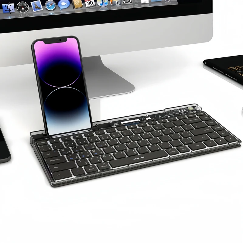 انتخابی بی‌نظیر برای کسانی که به دنبال کیفیت، زیبایی و کارایی هستند. کیبورد Green Lion مدل ترنسپرنت با طراحی زیبا و استفاده از ساختار Scissor Foot، تجربه‌ای متفاوت از تایپ را برای کاربران فراهم می‌کند. این کیبورد با سه روش اتصال (2.4G، بلوتوث 1 و بلوتوث 2) به شما امکان می‌دهد به‌راحتی به دستگاه‌های مختلف متصل شوید. با برد عملکرد تا 10 متر، شما می‌توانید حتی از فاصله دور هم به‌صورت کارآمد از آن استفاده کنید، که این ویژگی به‌خصوص برای جلسات و کارهای گروهی بسیار مناسب است. این کیبورد دارای پورت شارژ Type-C و باتری قابل شارژ است که با زمان شارژ کمتر از 3 ساعت، آماده به کار می‌شود. عمر کلیدها تا 3 میلیون ضربه تضمین می‌کند که این کیبورد برای استفاده طولانی مدت دوام بالایی دارد. ساختار Scissor Foot نیز تجربه تایپ بسیار نرم و راحت را ارائه می‌دهد، که باعث کاهش خستگی انگشتان در هنگام استفاده طولانی مدت می‌شود. صفحه‌نمایش LED روی کیبورد وضعیت اتصال و شارژ را نشان می‌دهد و استفاده از آن را برای کاربران ساده‌تر و کارآمدتر می‌سازد. علاوه بر این، کیبورد ترنسپرنت دارای حالت صرفه‌جویی هوشمند انرژی است که با کاهش مصرف باتری، به طولانی‌تر شدن عمر آن کمک می‌کند. طراحی شیک و شفاف این کیبورد به فضای کار شما جلوه‌ای مدرن و زیبا می‌بخشد، که آن را به گزینه‌ای عالی برای دفاتر کار یا محیط‌های خانگی تبدیل کرده است. اگر به دنبال کیبوردی هستید که ترکیبی از عملکرد قوی، طراحی مدرن و دوام بالا باشد،قطعا کیبورد Green Lion مدل transparent پاسخگوی نیاز شما خواهد بود.
