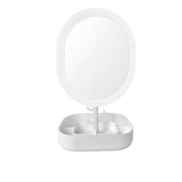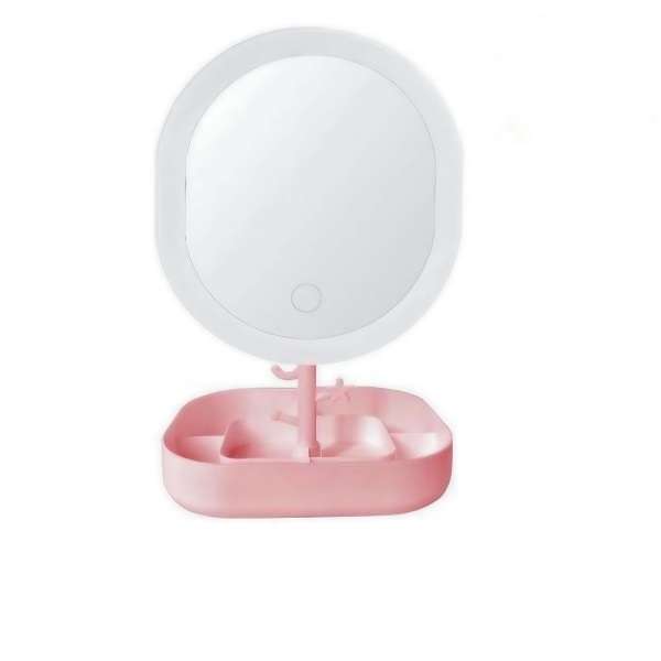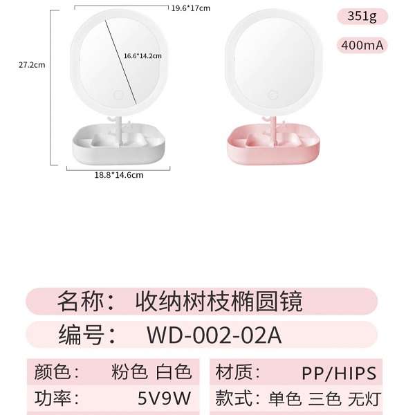 آینه و رینگ لایت آرایشی مدل WD-002-02A آیینه بکلایتدار به همراه سه طیف نوری آفتابی،مهتابی و یخی با قابلیت تنظیم شدت نور به همراه باتری قدرتمند قابل شارژ با پورتC عرضه شده است.این مدل آیینه دارای چند شاخه برای آویزان کردن زیورآلات و نیز باکس برای نگهداری لوازم آرایشی و غیره میباشد. شما با استفاده از این آیینه به راحتی میتوانید حتی در نور بسیار کم آرایش کنید؛ همچنین شدت نور رینگ لایت دور اینه علاوه بر قابلیت تغییر با نگه داشتن دکمه لمسی روی آینه قابلیت تنظیم را دارد. لازم به ذکر است روکش جیوه به کار رفته در این محصول فوق العاده واضح و شفاف بوده و به هیچ عنوان کوچک و یا بزرگ نمایی ندارد و چهره شما رو بدون تغییر زاویه به شما نمایش میدهد.آینه رینگ لایت مدل WD-002-02A بیضی با حاشیه گرد و دارای استند باکسی روکش دار دو تیکه عمیق میباشد که هم با درپوش قابل استفاده هست و هم بدون درپوش. برای نصب قطعات آیینه ابتدا صفحه آیینه را در سطحی کاملا صاف قرار دهید و با فشار کم خار پایه ها را در جای خود قرار دهید سپس در همان حالت کفی را قرار دهید و و 90 درجه کفی را بچرخانید تا قفل شود.